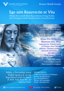 DEO GRATIAS Syukur Atas 10 Tahun Perjalanan Cappella Victoria Jakarta Cappella Victoria Jakarta akan menyanyikan sejumlah gubahan bertema syukur serta gubahan-gubahan mengenai dasar iman Katolik, yang selama ini menjadi tema-tema yang diangkat dalam setiap konser Cappella Victoria Jakarta sebagai bagian dari misi untuk "membagikan katakese dasar iman Katolik melalui musik liturgi suci", antara lain mengenai: - Allah Bapa (mahabaik), - Yesus Kristus-Putera Allah yang tunggal (Allah menjadi manusia, Ekaristi/transsubstansi, kebangkitan, kenaikan), - Roh Kudus, - Tritunggal Mahakudus, - St. Perawan…